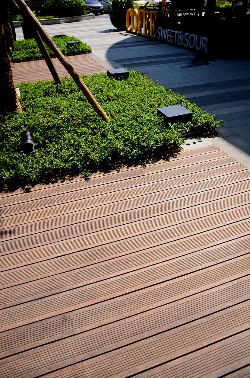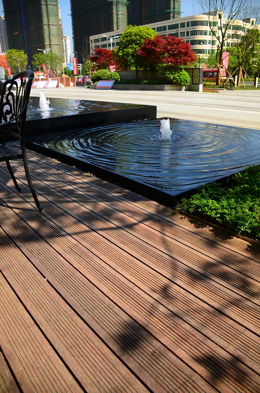 南昌万科金域国际位于南昌经开区双港西大街,是万科地产布局南昌的重点项目,该项目是南昌首屈一指的低密、人文、宜居的学院派主题风格社区。 南昌万科金域国际项目的社区风情广场使用桃花江户外防腐竹地板结合原生石材作为地面铺装,强化人与环境的自然统一,灵动的流水景观与学院派风格的建筑完美结合,漫步其中仿佛置身于欧洲某个宁静的古老小镇。