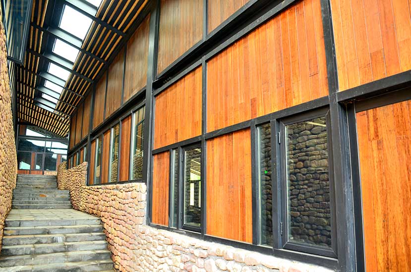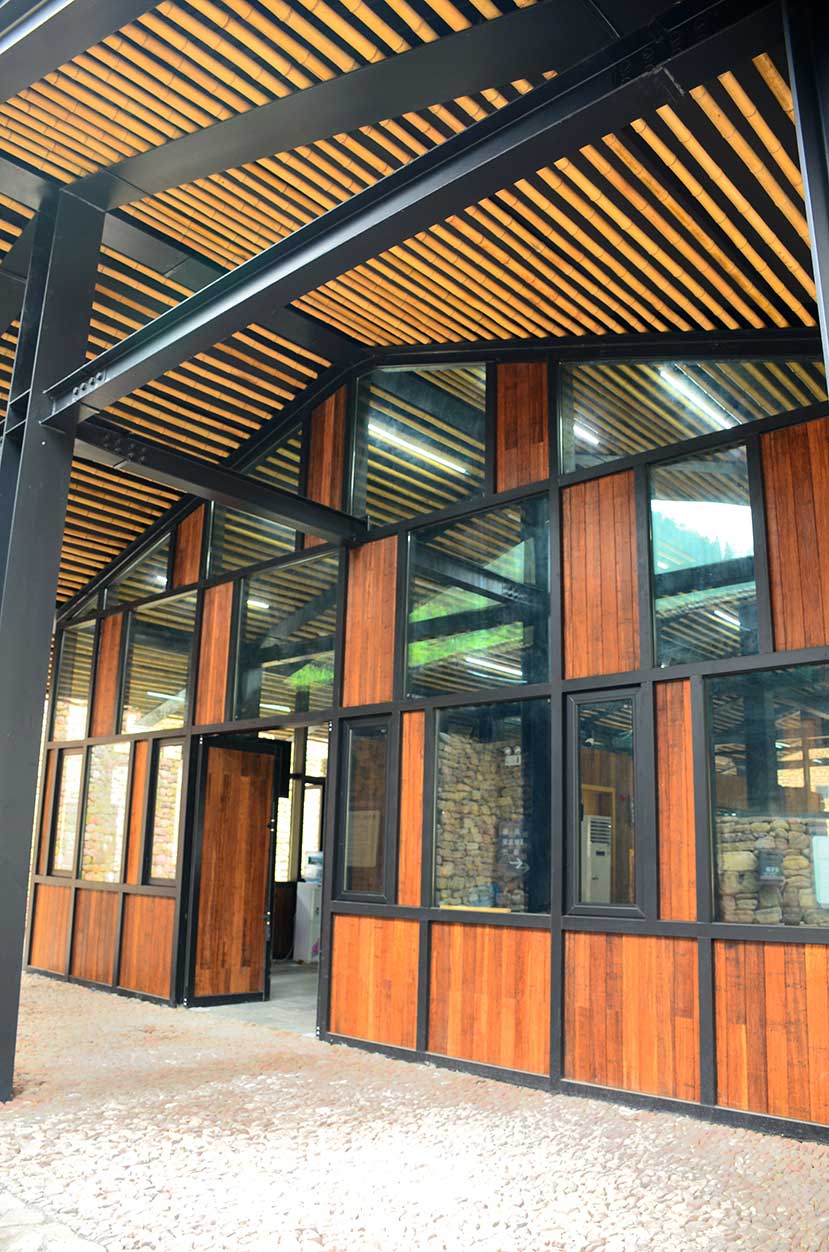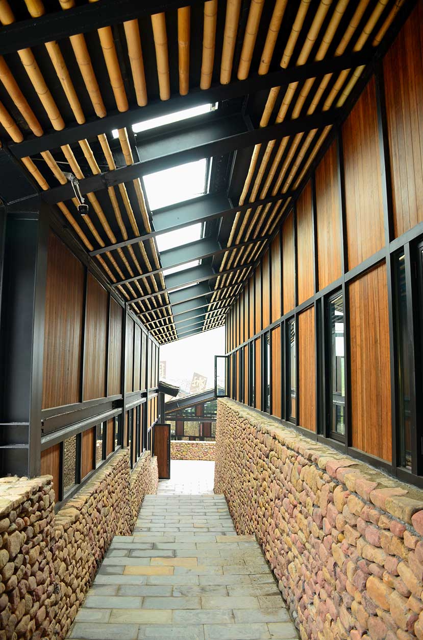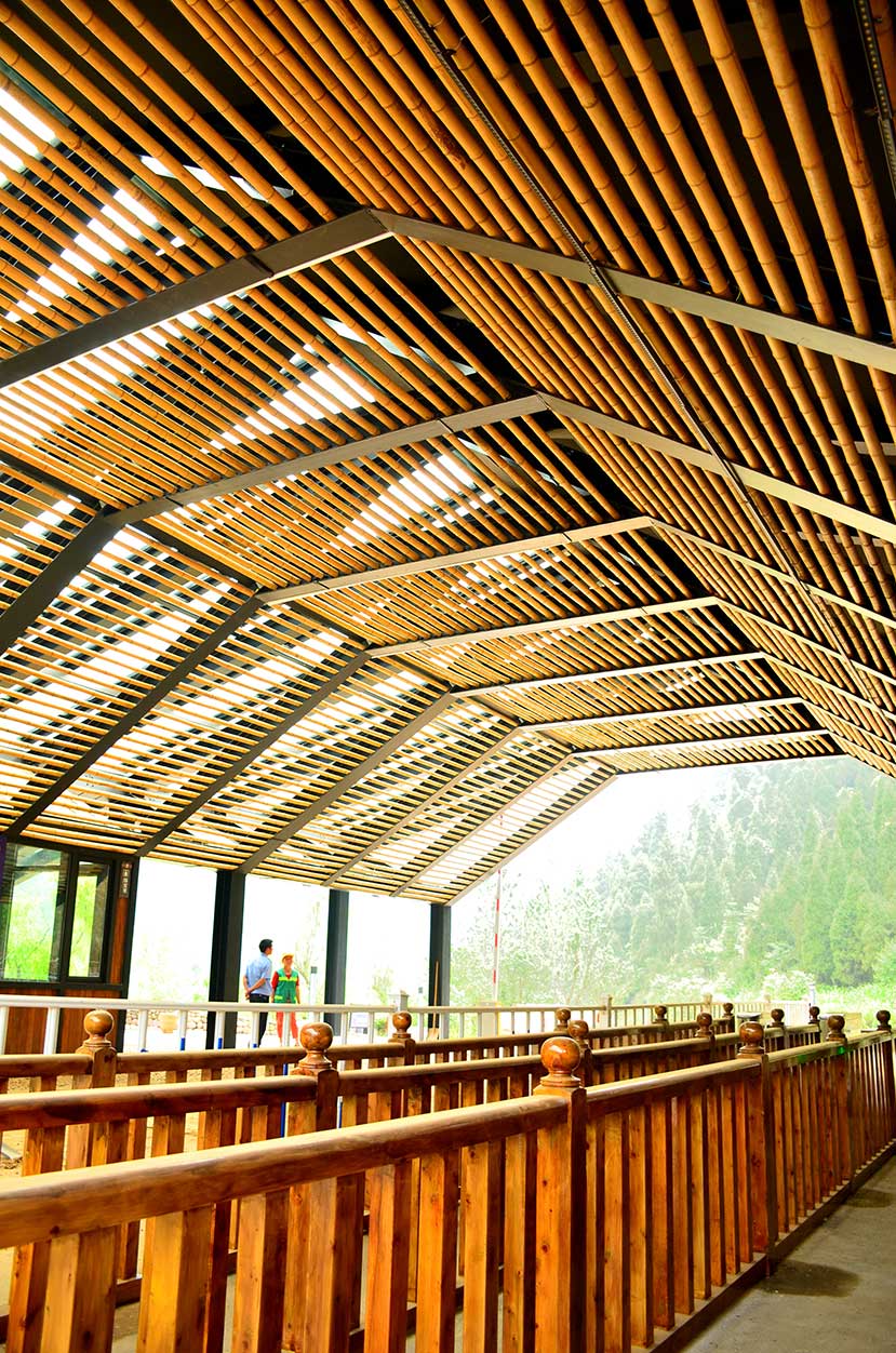 桃花江竹材科技最新案例老司城遗址公园位于湘西土家族苗族自治州永顺县城东20余公里处的灵溪镇老司城村。老司城遗址公园在南宋绍兴五年(1135年)至清雍正六年(1724年)期间是永顺彭氏土司的政治、经济、军事、文化中心。 老司城是土司制度的物化载体,是中国古代民族区域自治制度发展的活标本。2010年老司城遗址被列入中国第一批国家考古遗址公园立项名录,2015年被列入世界文化遗产名录。 老司城遗址公园的游客中心和遗址博物馆建筑装饰使用桃花江户外防腐竹墙板及原生白竹竿,设计师将竹材的质朴与厚重感发挥到了极致,完美的诠释了老司城的历史积淀,并且让现代建筑与历史遗迹和谐共生。