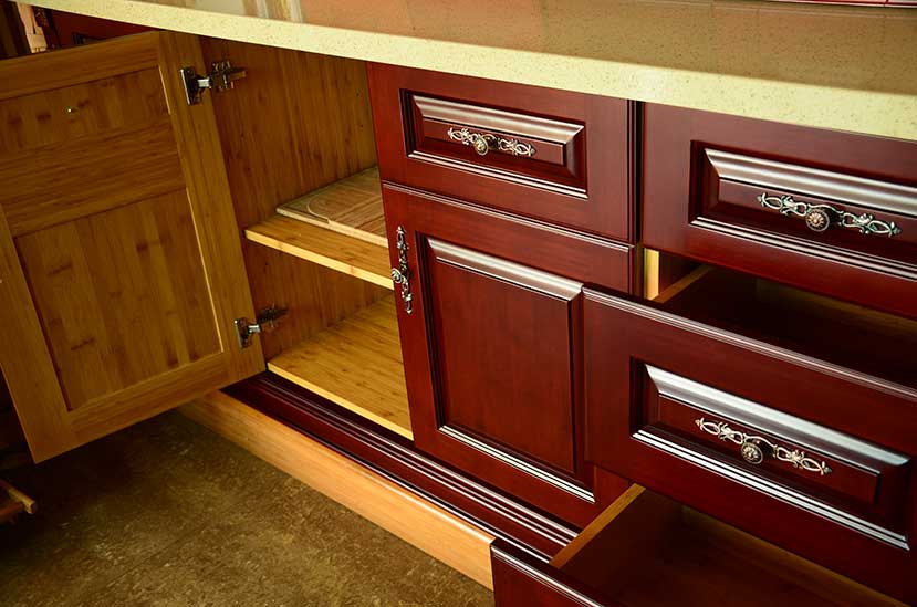 竹整体橱柜主体由桃花江室内竹集成材打造,产品可选择漆面效果也可涂刷水性漆以保留竹材最质朴的纹理。桃花江橱柜产品可根据客户需求进行风格与样式的定制,满足客户个性化需求,用环保竹材替代传统胶合板与木材,让家居生活更加健康、自然,让家居产业更加绿色环保。