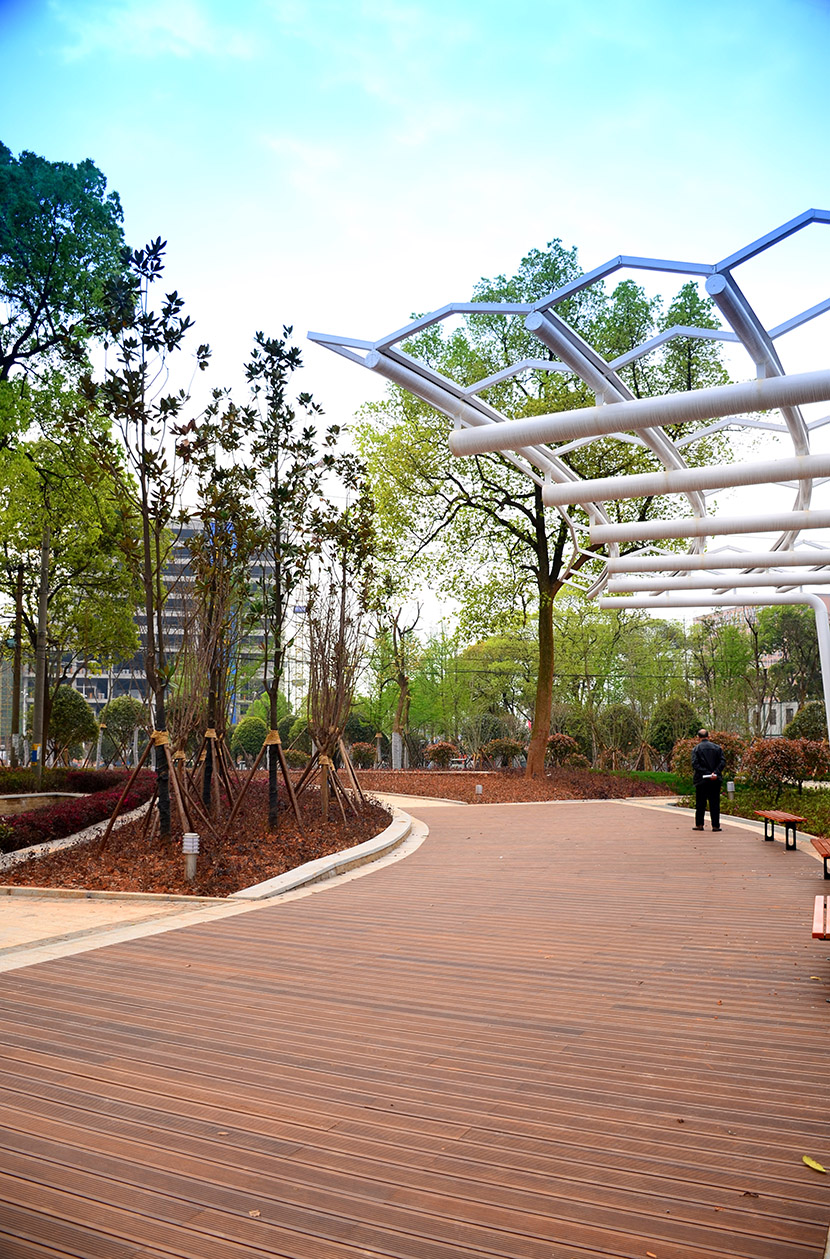 长沙先锋公园北邻大托路,东邻韶山路,西邻芙蓉路,总用地面积27728平方米,是长沙南大门的提质改造项目。 先锋文化公园规划主题为--芙蓉镜。公园利用东西视觉轴线,打造芙蓉主体印象文化轴,再引入芙蓉疏林花田空间,展示特色农艺民俗,以营造融入市民参与体验,点缀芙蓉主体花镜的社区生态花园。 公园在建筑装饰材料上选用了湖南桃花江的户外竹地板,竹材独有的文化底蕴将湖湘文化理念发挥到极致。