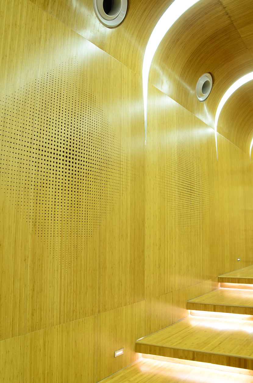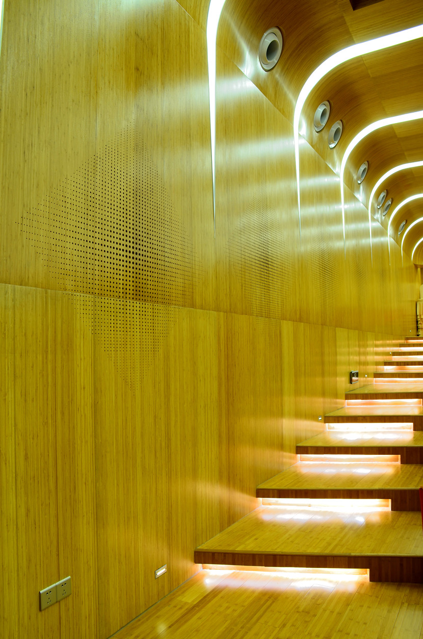 李自健美术馆是由全球著名艺术家李自健丹慧夫妇独资投建,是全球最具规模的现代化个人公益美术馆之一。美术馆位于长沙湘江西岸的洋湖湿地公园东头,总占地面积逾180余亩,建筑占地面积15.3亩,室内面积25000余平方米,主展区为逾5000平方米,美术馆对外永久免费开放。水上音乐厅作为李自健美术馆的重要组成部分全部使用桃花江竹材科技的室内竹材进行装饰,地面、墙面、吊顶及音乐厅吸音板均运用E0级环保竹材。 越来越多的艺术场馆青睐使用竹材不仅仅是因为竹材的自然与环保属性,更重要的是注重它的文化属性,竹材的文化价值是其它任何材料都无法比拟的。
