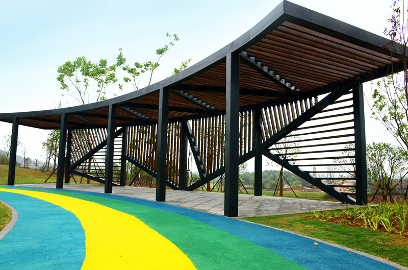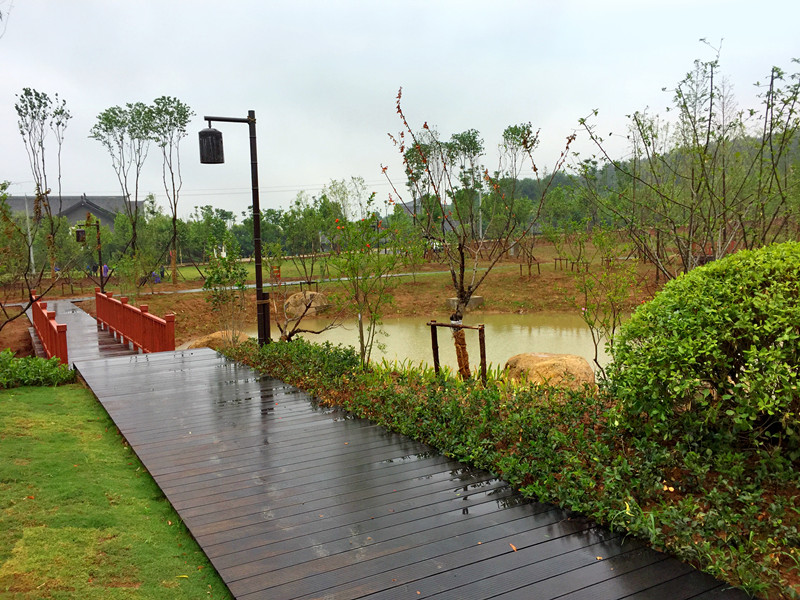 紫蓬山是取名紫色袈裟和蓬莱仙岛的首字而得名,寓紫气东来之意,位于合肥西南18公里,肥西县农兴镇南,有森林大道与市区相通,紫蓬山自清代开始便有庐阳第一山之美誉。 公园内大量运用湖南桃花江竹材科技的户外高炭防腐重竹地板,森林般的原始景致,未经大量人工雕琢,竹材的运用在公园中显得格外和谐,静雅的自然风景与环保的竹材相得益彰,大雨冲刷后的地板光洁如初,防腐耐磨稳定性高,是人们休闲娱乐,放松心情的好去处。