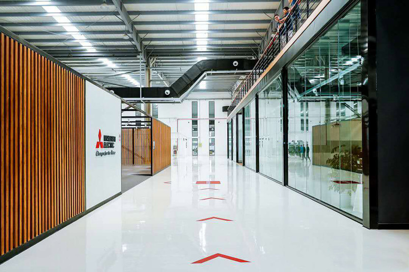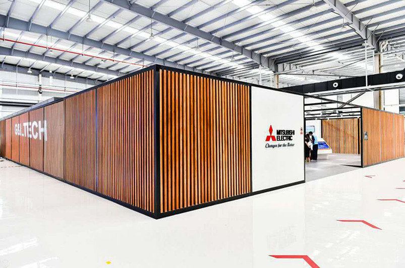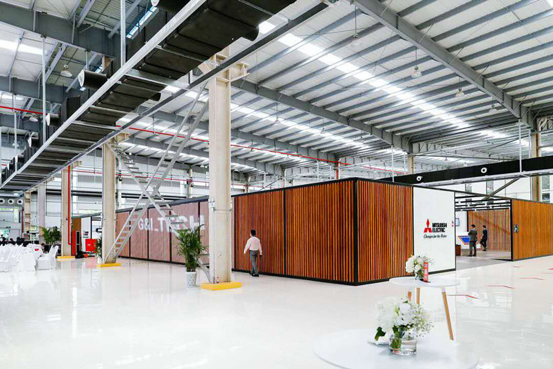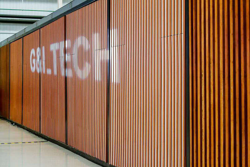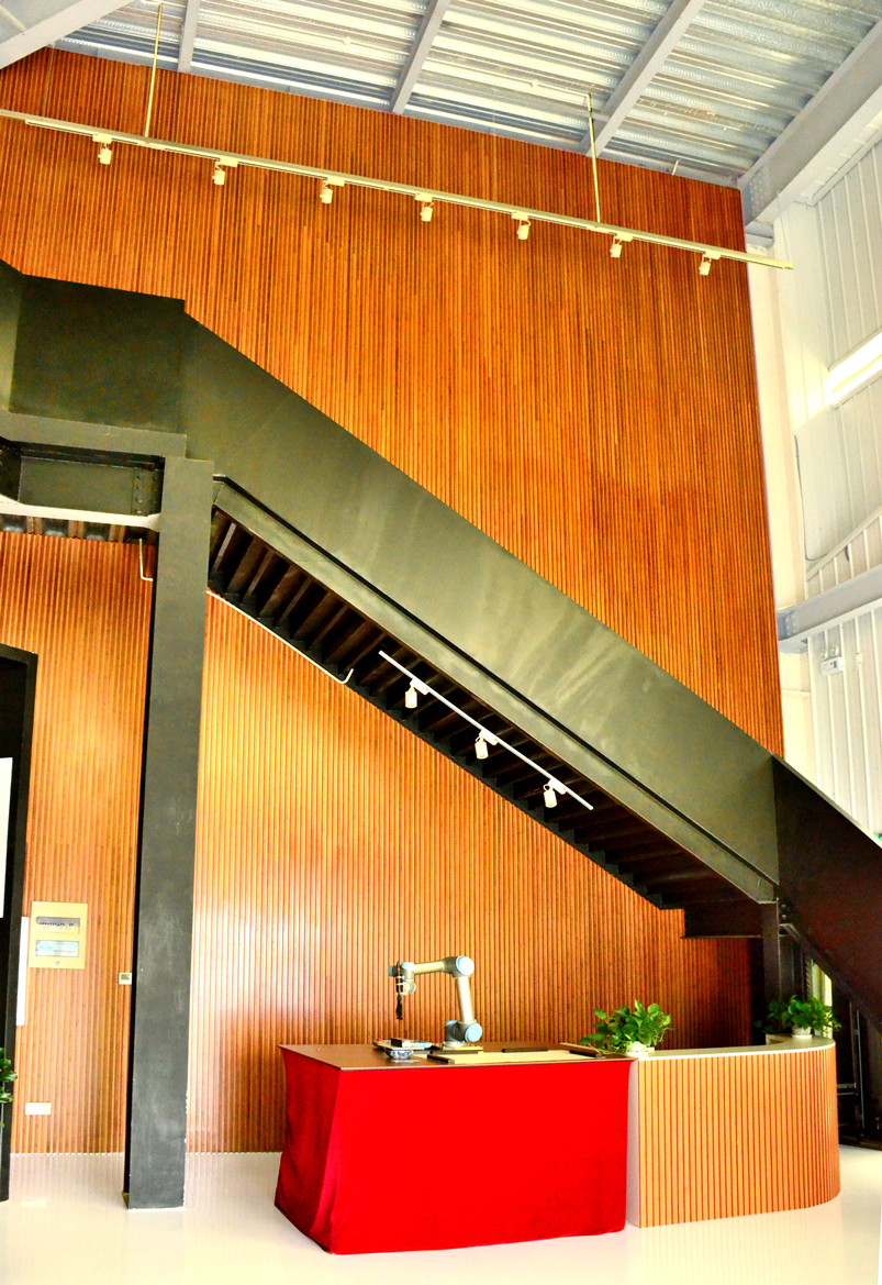 菱创智能是一家集设计、研发、生产制造、销售和服务为一体的创新驱动型企业。其办公区的装饰采用桃花江的室内装饰竹材。工业化的现代厂房与清新脱俗的传统竹材形成强烈对比,为端庄严肃的工业厂房增添了一丝柔美与和谐。竹格栅的设计显得整个空间通透又有层次感,既不失现代工业的科技感,又保留传统文化的美感。