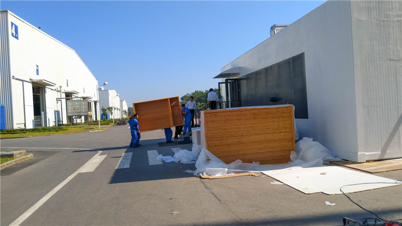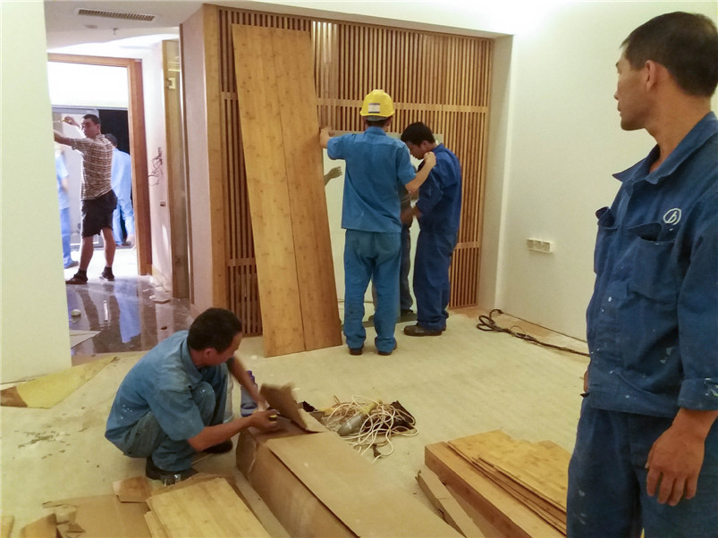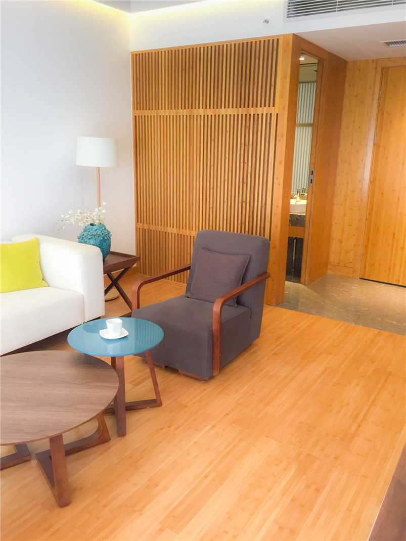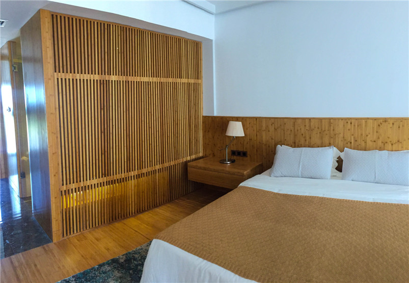 远大可建是远大科技集团全资子公司,是全球持续建筑的先驱。基于对竹材的喜爱和对竹材环保的高度认可,远大总裁张剑亲自参与此次与桃花江竹材科技在其塔式酒店产品竹整装项目的洽谈。在远大可建汨罗工厂,酒店竹整装三套样板间安装施工已基本完成,内部装饰全部在桃花江竹材科技工厂加工后运至在现场组装,地面铺设竹地板,整体效果简洁、自然、温馨。远大总裁张剑视察样板间后对竹材装饰效果十分满意,表示将加大对可建酒店竹整装项目的研发与推广,加强与桃花江竹材科技的深度合作,期望未来全世界每三幢新建建筑就有一幢是可建。