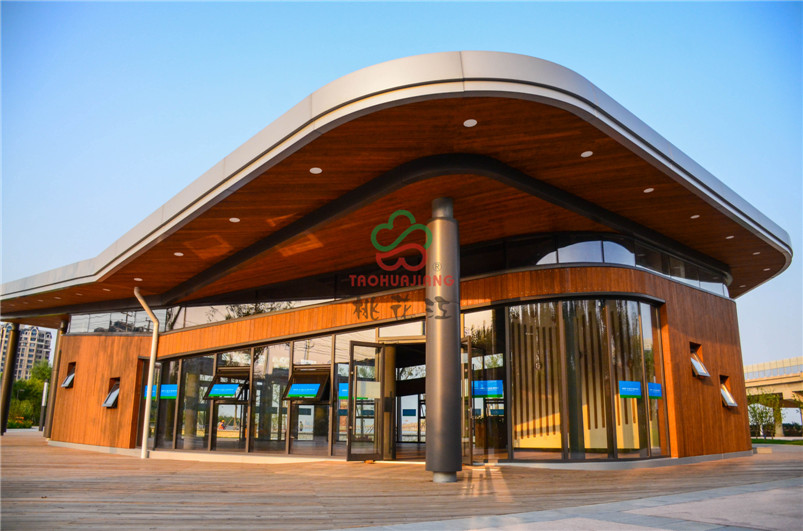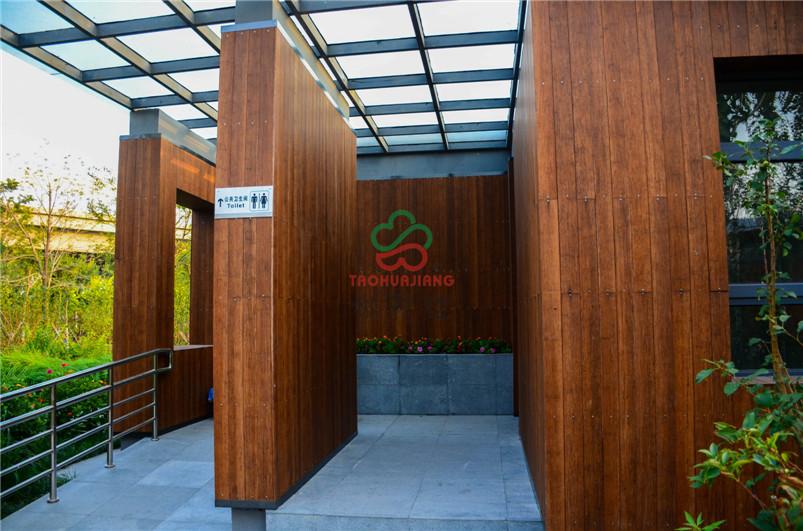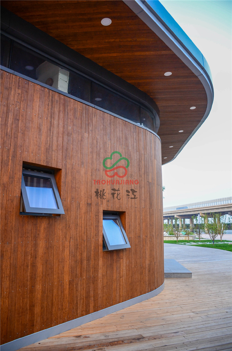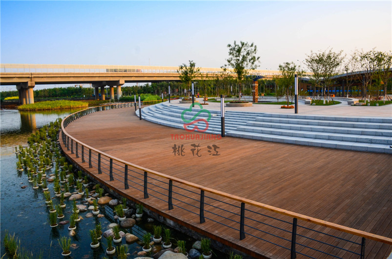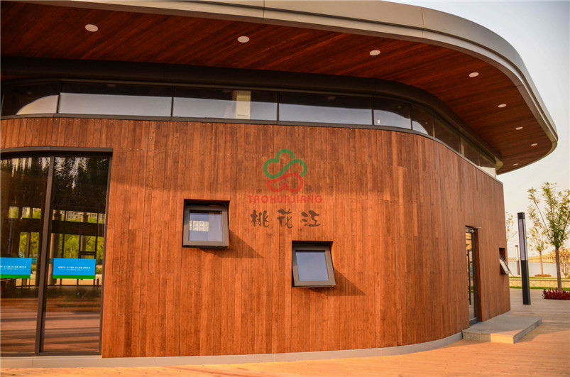 该公园东侧为海滨高速公路,西侧为滨海旅游区办公区域,北临海博路,南至规划海旭道,是从城市空间到海边的过渡型景观。项目的建设是在尊重历史和现实条件基础上,结合先进的生态建设理念,大面积运用了桃花江竹材科技的环保竹材作为主体装饰材料,公园内的主体建筑,采用桃花江竹材科技的全竹装饰来装潢,高炭防腐竹材做外墙和吊顶装饰,色泽明亮,浑然一体,既现代又传统的竹材装饰风格为公园营造自然、郊野景观氛围,为市民提供一个全新的休闲娱乐场所。