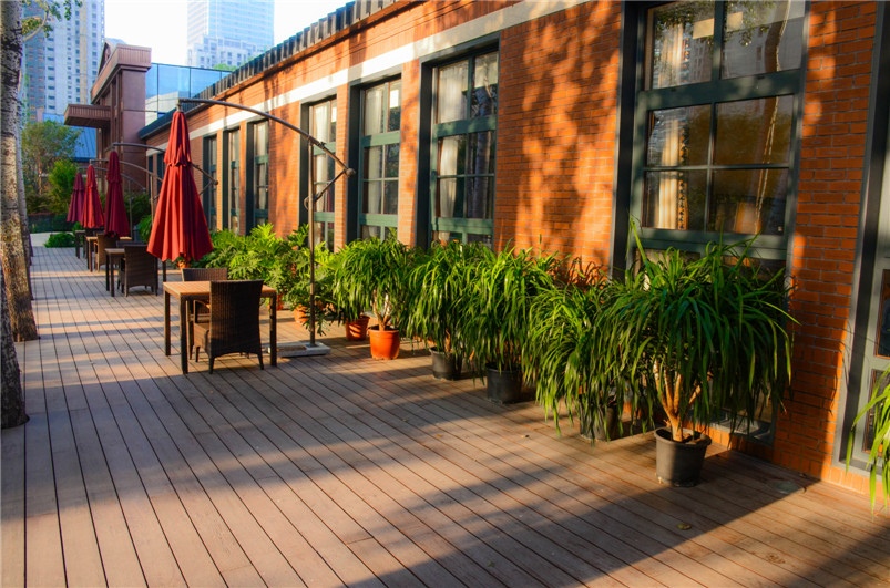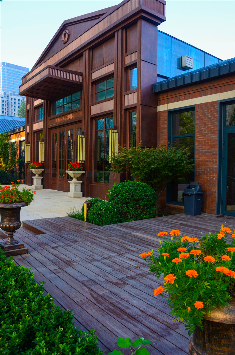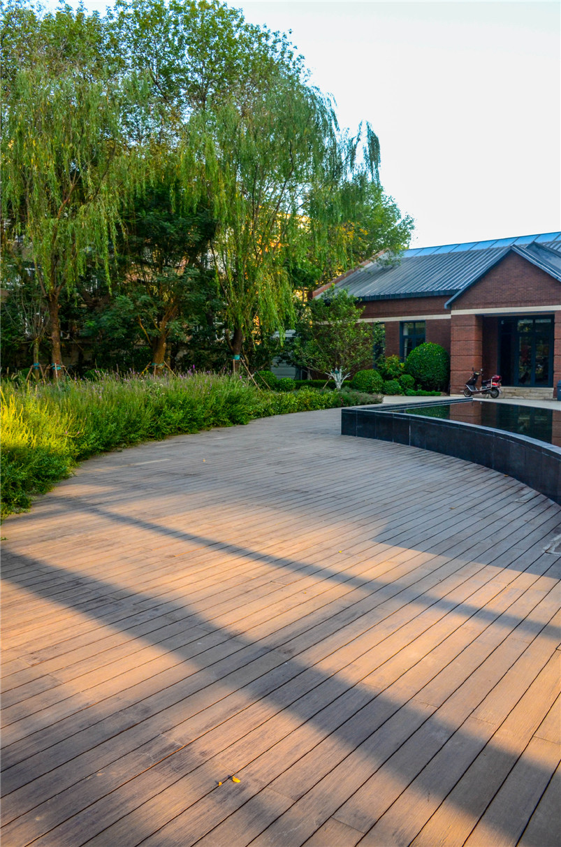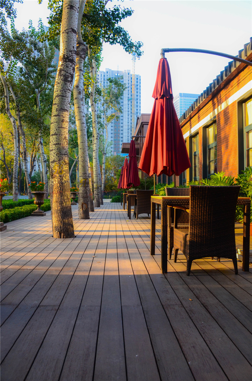 天房六合国际是由天津本土的房地产商天房集团建设的,天房六合国际位于天津河西区新八大里的六里地块。桃花江竹材科技的户外高炭防腐竹地板在该项目的沿街道路,园林景观中大量运用,在阳光照耀下,地板与红砖墙相互辉映,四周绿植鲜花环绕,树木镶嵌其中,颇有一股欧式小镇的韵味。