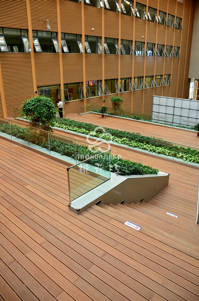 滨海新区文化中心位于天津市滨海新区核心区中心商务区,是滨海新区从增强文化软实力、促进文化大发展大繁荣出发,建设的一项标志性文化工程。滨海文化中心(一期)是包括滨海美术馆、滨海探索馆、滨海图书馆、滨海演艺中心、市民活动中心、文化长廊在内的五馆一廊综合体,致力于打造集教育、旅游、健康于一身的大型旗舰文化航母,项目中的市民活动中心区域采用桃花江户外防腐竹地板。竹材深厚的文化底蕴与其优异自然环保的性能一直是文化场馆建设用材的首选。
