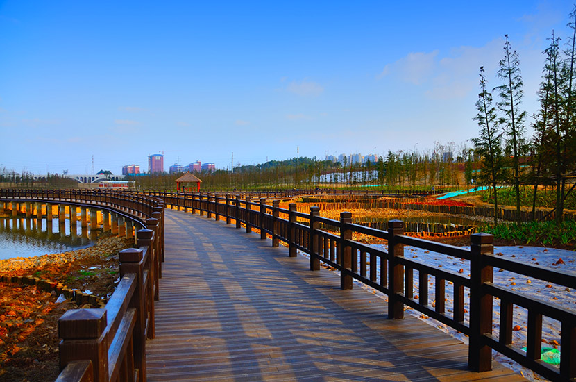 松雅湖国家湿地公园位于长沙星沙,是集防洪调蓄、城市安全饮水、改善城市生态环境、完善城市功能配套布局、提升城市生活品位于一体的综合性工程。 松雅湖生态公园总占地面积489.62公顷,合7 344.3亩。位于长沙县北部,北至捞刀河,南至滨湖路,东至东六线(北段)和东八线(南段),西至松雅河,通过澳大利亚GHD公司的规划设计,拟以松雅湖为核心,建成一个以湖光山色、自然生态为基础的,集休闲、旅游、娱乐、健身、水上活动等功能于一体的综合性公园。 松雅湖湿地公园全方位使用桃花江竹材科技生产的户外高炭防腐环保竹材。