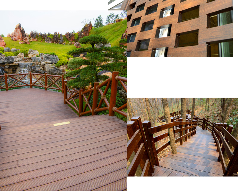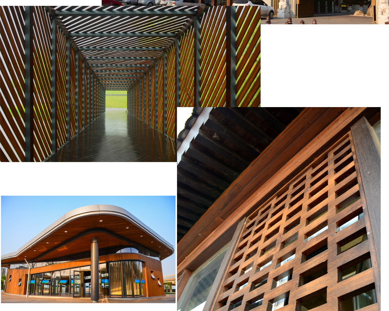 由于竹子的天然特性,其吸湿、吸热性能高于木材,在稳定性上,竹木材料的收缩和膨胀也比实木材料小,且导热系数低,所以还有“冬暖夏凉”的特性。纹理自然、色泽典雅,绿色环保,高耐候,耐腐蚀,似木非木,碳化高耐竹木板材可与紫檀乱真,是高档木材的理想替代品。