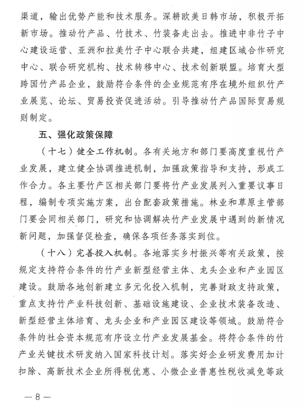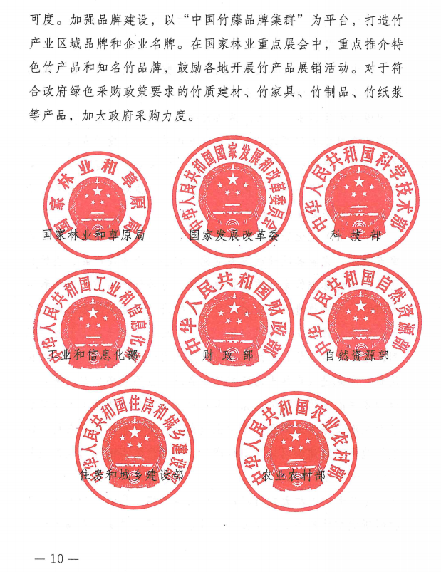 十部门联合发布关于加快推进竹产业创新发展的意见