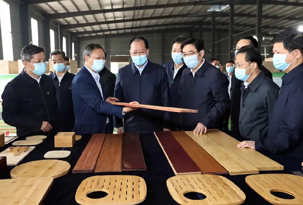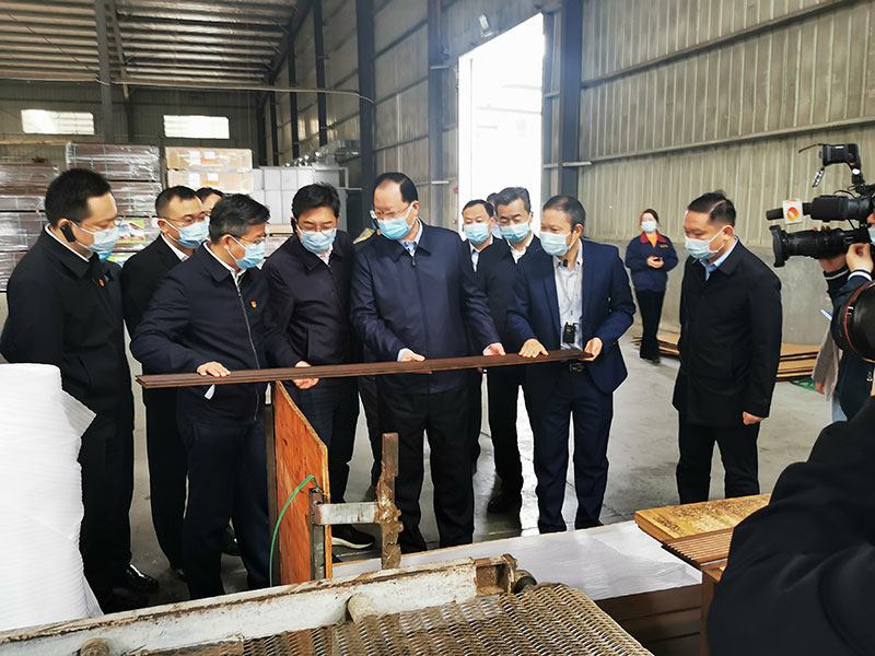 10月27日上午,毛伟明省长一行来到益阳、常德调研,第一站到了168极速/赛车/幸运/飞艇官方开奖历史记录。省政府秘书长邓群策和益阳市委、桃江县委等相关部门领导陪同调研。毛伟明省长与桃花江竹材公司董事长薛志成进行了亲切交流,边参观生产车间,边详细了解了公司经营情况和竹产业相关情况。毛伟明省长视察后非常高兴,表扬桃花江竹材公司管理规范,对公司科技创新和未来发展前景大为赞赏。同时勉励桃花江竹材公司发挥龙头引领作用,带动湖南竹产业快速发展。这是桃花江竹材公司第五次接待湖南省委书记和省长的考察调研,足见湖南省委、省政府对发展竹产业的高度重视,对桃花江竹材公司为湖南竹产业发展所作贡献的高度肯定。